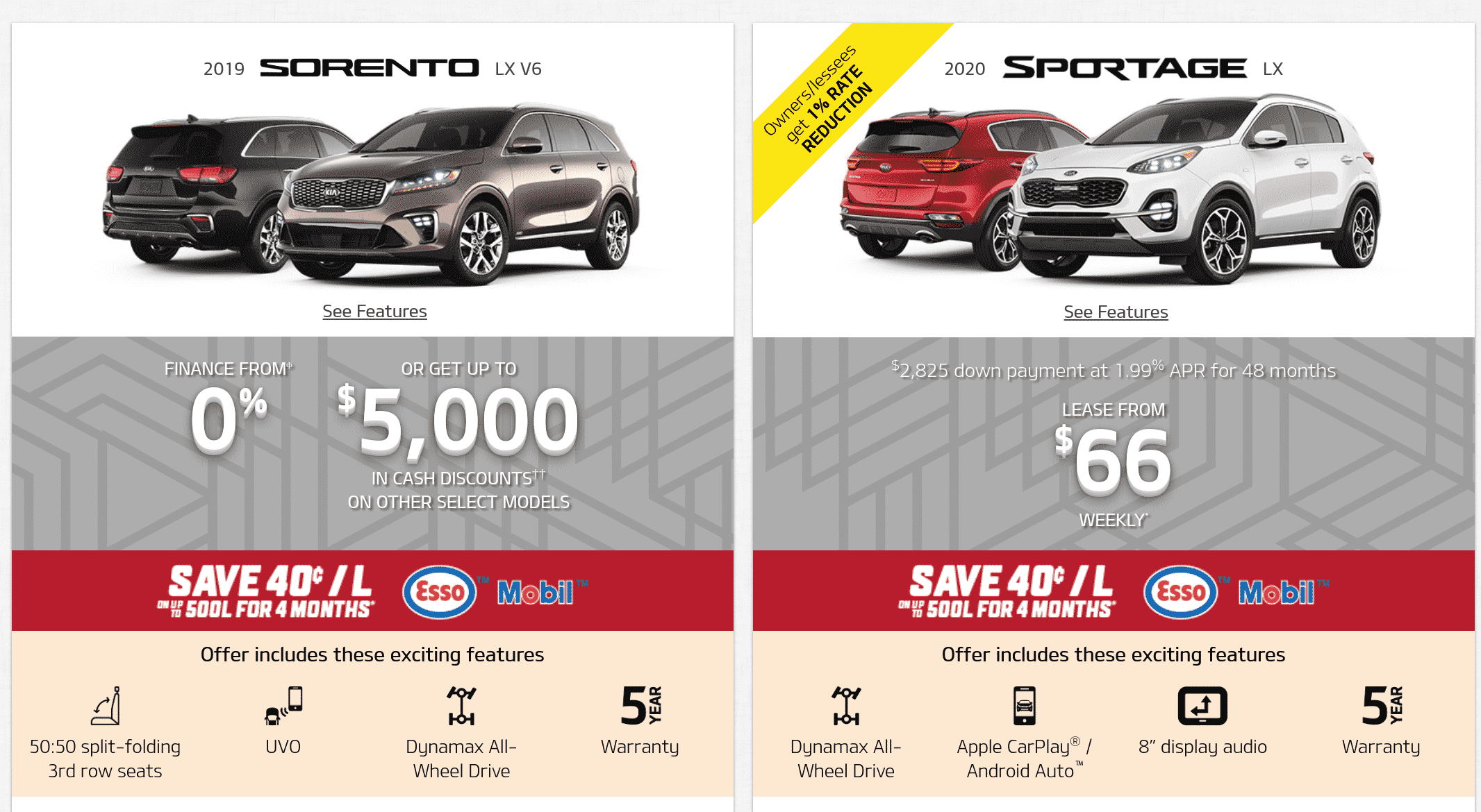 The 2019 Kia Sorrento is a carries a similar and fantastic promotion form last month. Seat 7 on a 0% finance term, with sunroof, power-lift gates, and 360 degree cameras. Even though Kia still offers a Sedona minivan as an option, I strongly recommend against it. A 7 seater SUV holds more value when its time for you to sell.