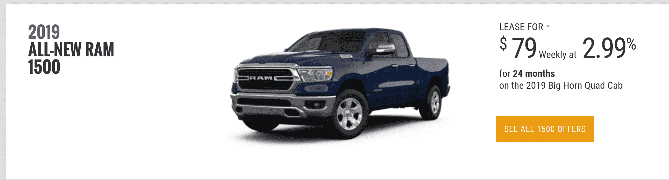 Dodge has been extremely consistent with the cash discounts offered on their new pickup trucks. The incentive and the BigHorn lease payment are the same from last month. The BigHorn below is advertised at a weekly payment of $79 however the down payment should be $2699+HST if it carries the same residual as last month.