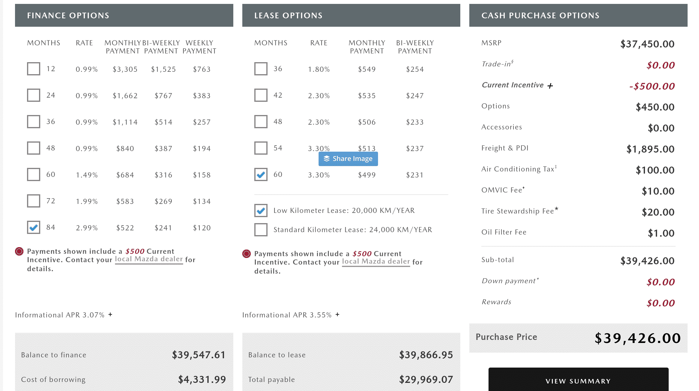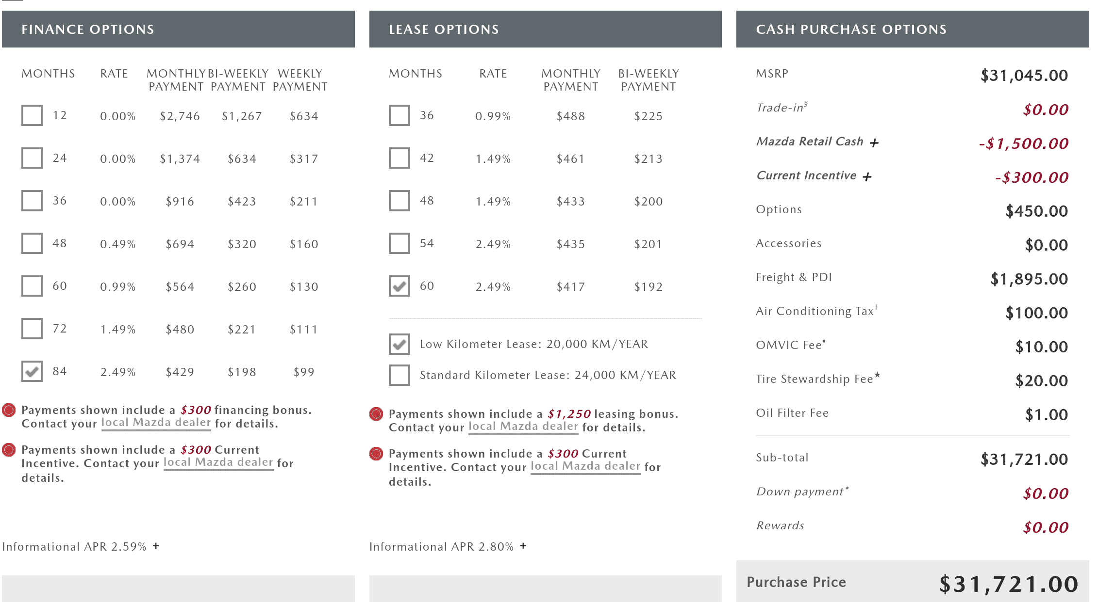 This month Mazda has chosen to advertise their vehicles on their cash price values, and you have to work further into the vehicle selection to get lease or finance price scenarios. Generally manufacturers do this if they are advertising a cash incentive, however strangely enough Mazda does have some great lease and finance deals.