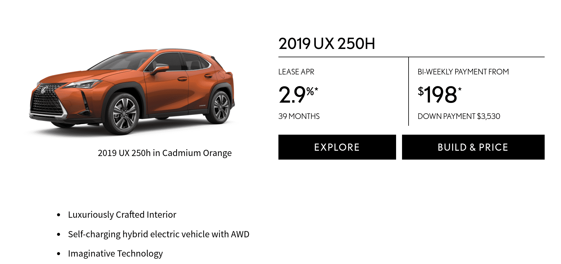 This Lexus is such a cool offering considering it gives the additional utility of being a hatchback hybrid vehicle. Expect to get great fuel economy off the UX250h.