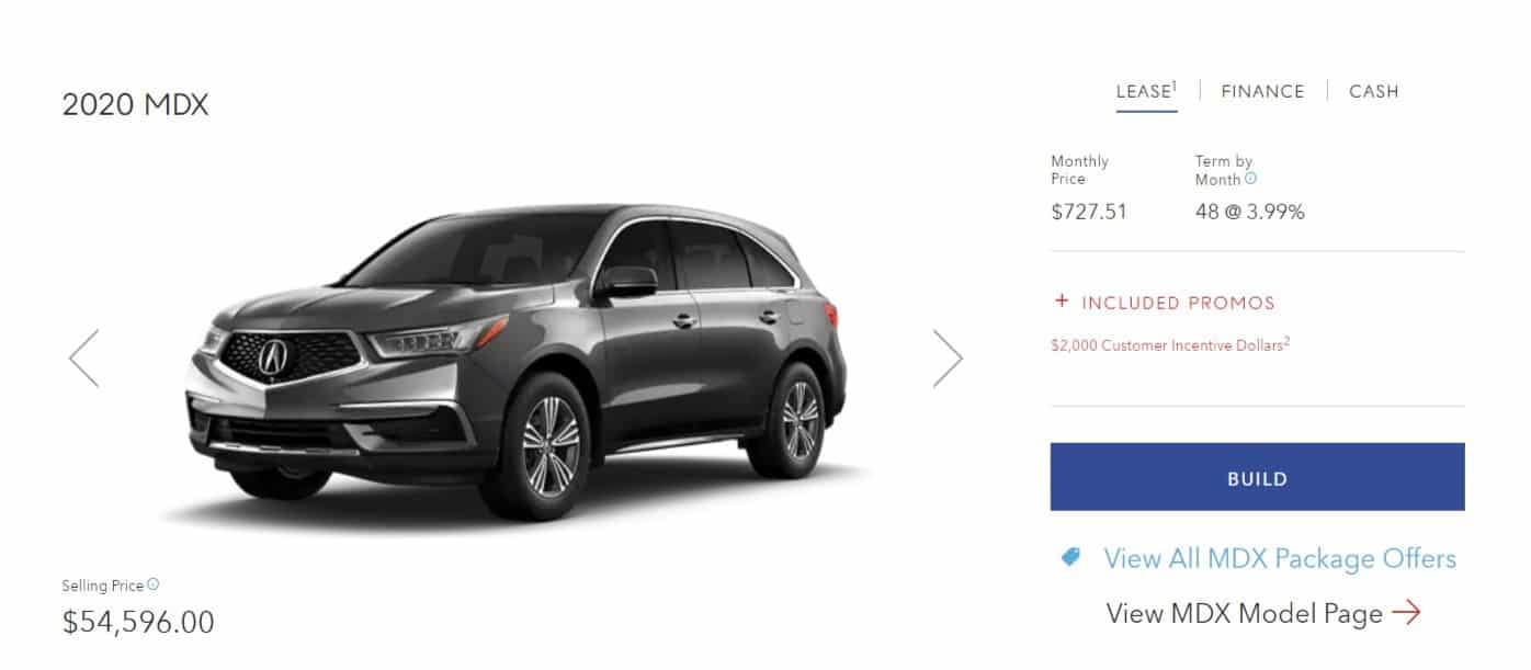 The 2020 RDX has a respectable monthly payment of $617. This is one of the few 2020 luxury SUVs that you will find a competitive payment relative to what you can purchase a 2019 luxury SUV for.