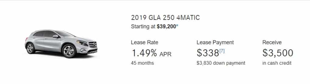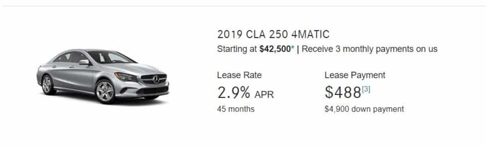Mercedes is consistent with their offering this month and there’s not really any deal in particular that stands out. rather than looking at the CLA 250 consider the Lexus IS 250. Although both luxury compact sedans, the Lexus comes out as a much stronger lease option with far less of a down payment.
