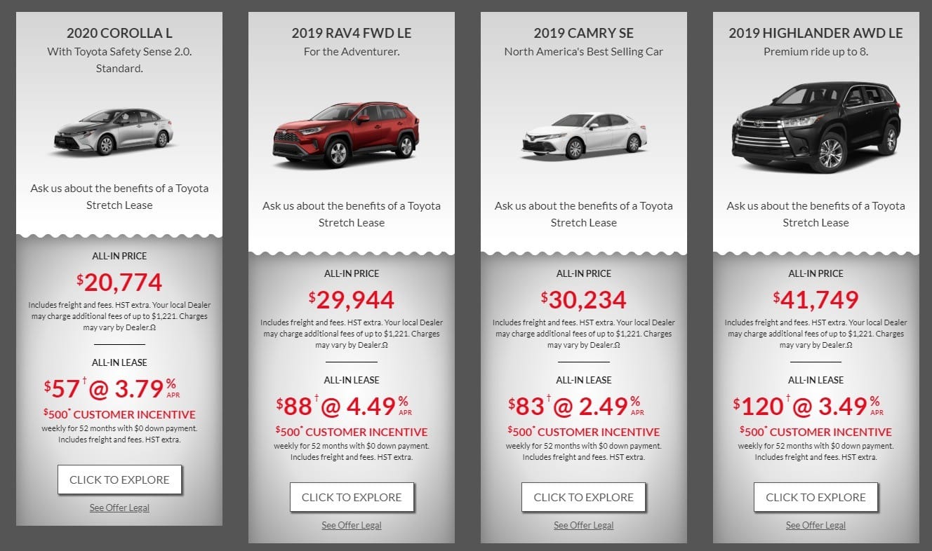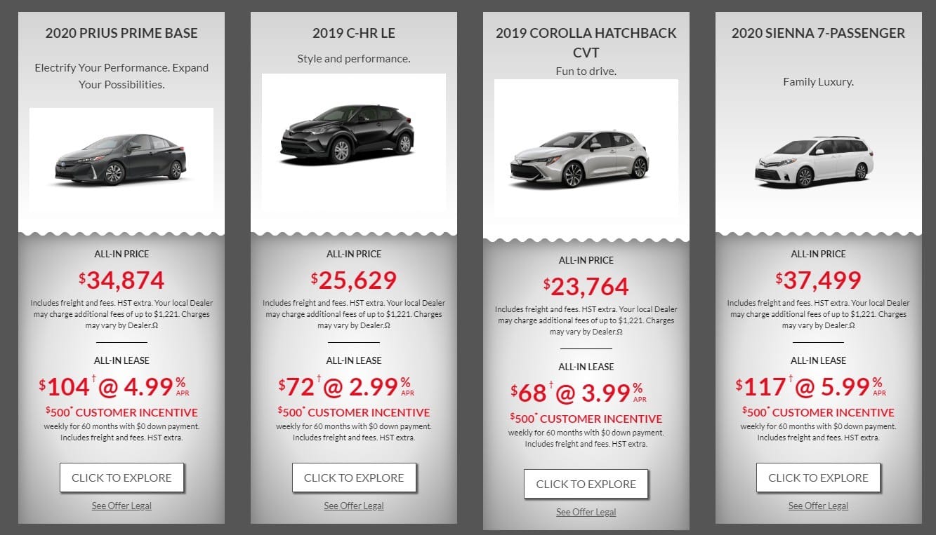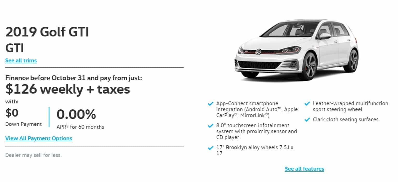 The October incentives bring great prices on lease and finance deals if you’re looking for a 2019 model, demo, or even 2020! Here’s the rundown of the best new car lease and finance deals in Ontario, Canada.