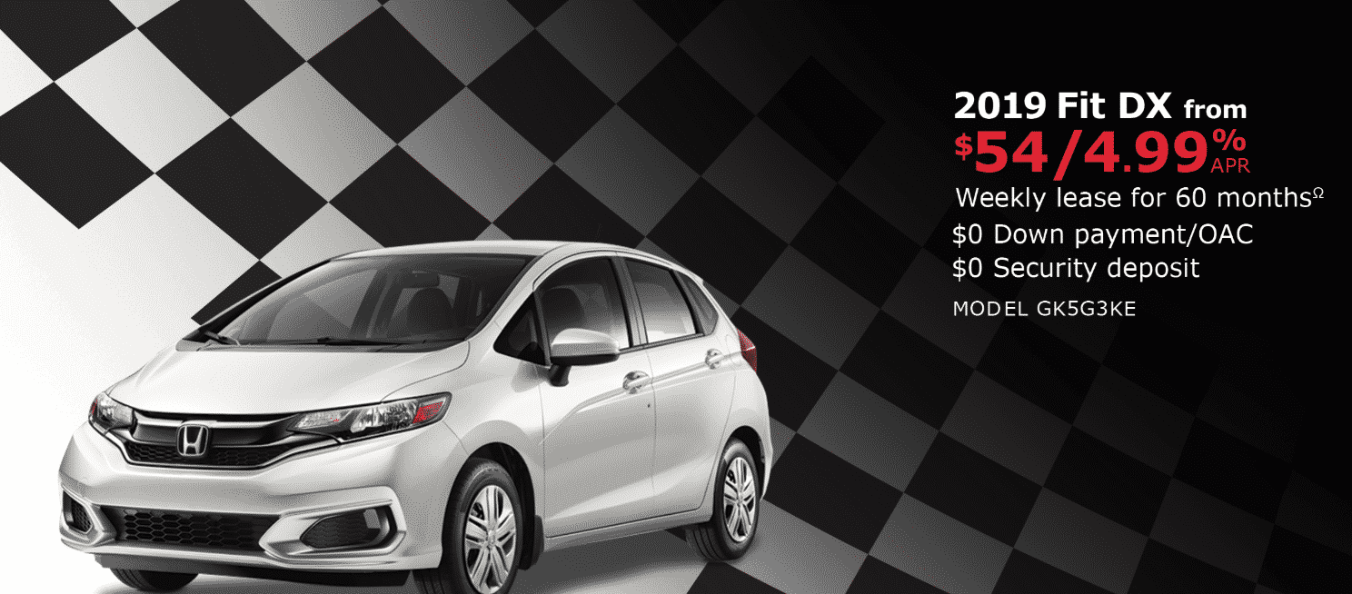 Checkered flag days are on with Honda again this month. The fit is a great option for the city on a 5 year term with 0 down, however the extra space you get in the CIVIC makes it a better option for the price. 5 years is a long time to decide your in a vehicle that isn’t large enough!