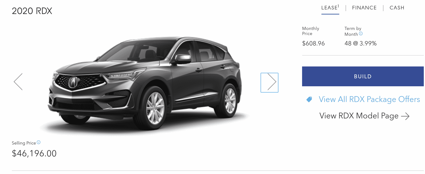The RDX lease payment has dropped by about $16 compared to last month. A humble decrease, however at $608 a month, it’s still one of the most affordable luxury 5 seaters SUV’s in the segement right now, with NO downpayment on only a 4 year term.