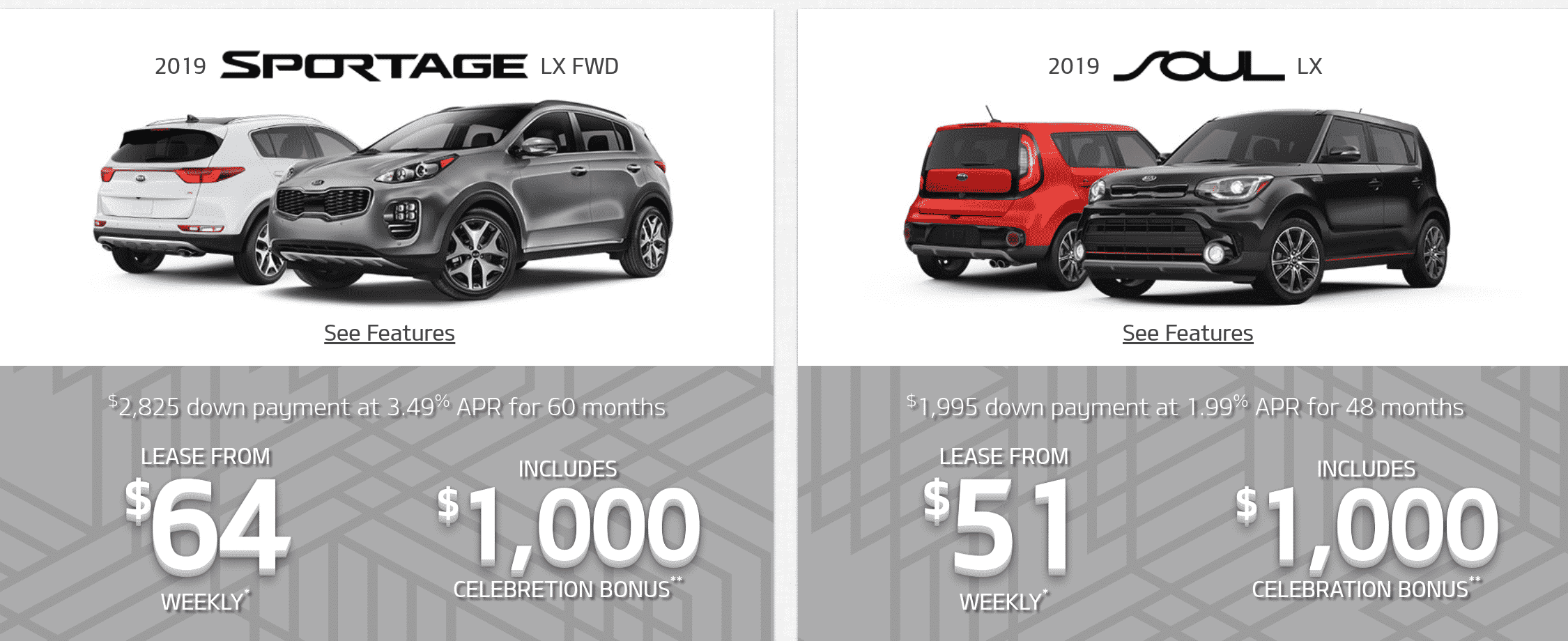 Kia has a competitive offering to Hyundai if you are comfortable with a slightly higher downpayment and are okay with leasing for 5 years rather than 4. Opting for the extra year will also help lower the monthly payment.