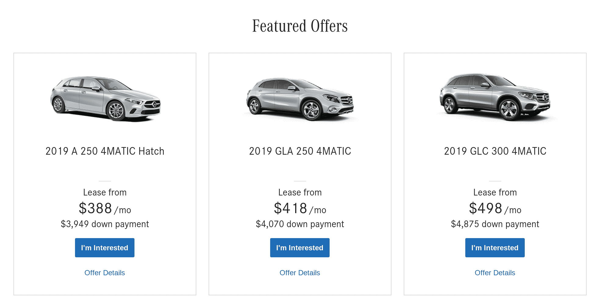 Mercedes has consistently advertised these featured vehicles with a similar down and monthly payments month over month.