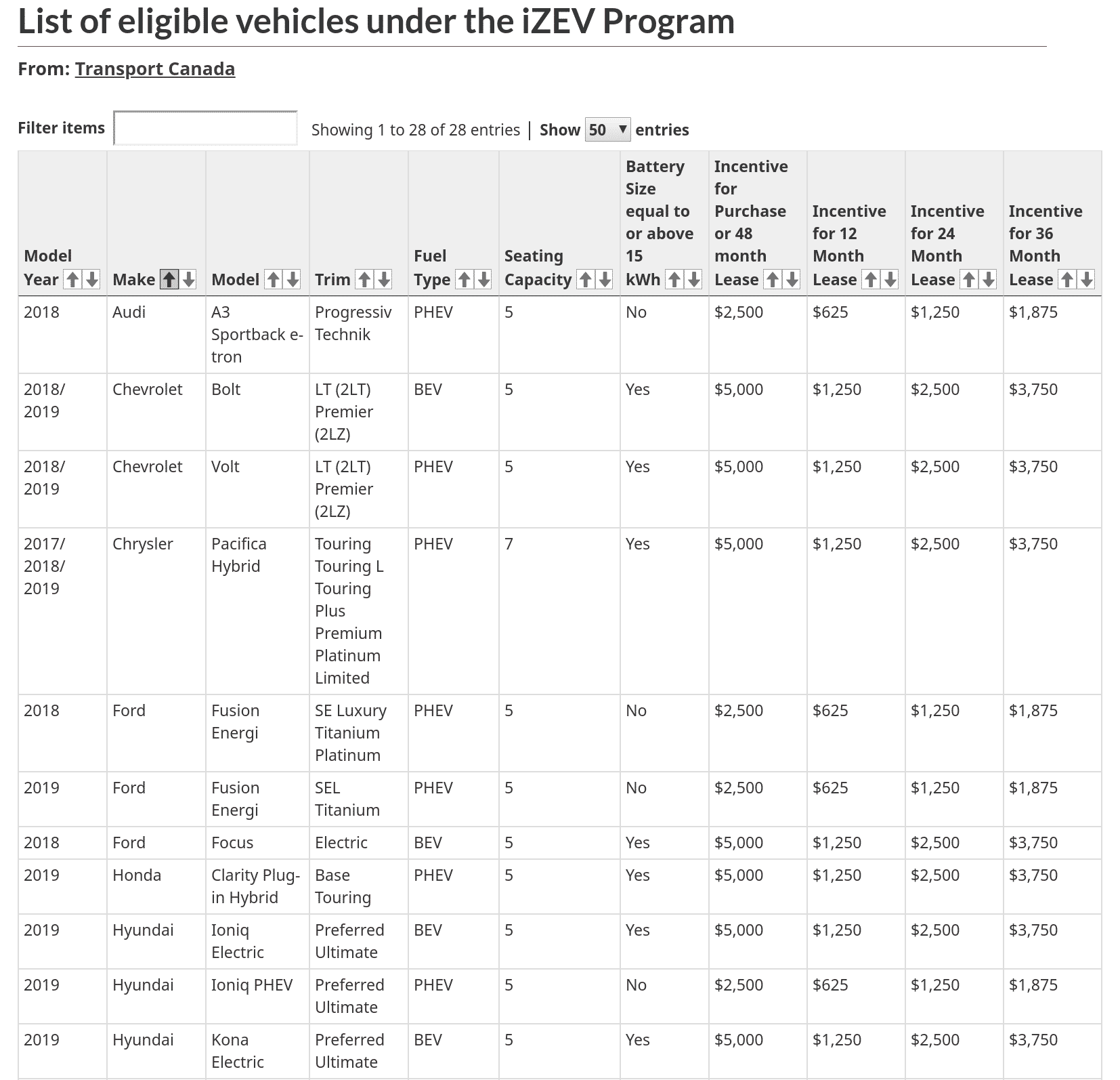 In an effort to reduce emissions and pollution on the road, the Canadian government has activated a ‘Zero Emission Initiative’ known as the IZEV program to curb the cost of hybrid and fully electric vehicles. Expect up to $5000 off certain qualifying models depending if you’re leasing or financing.